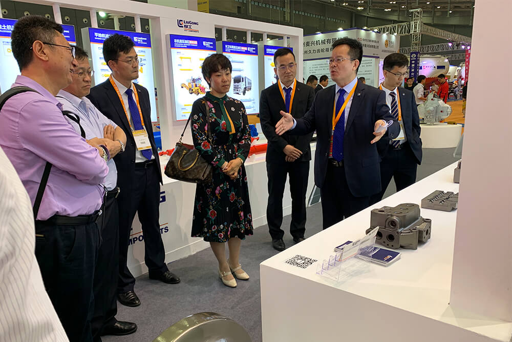 在展会第二天,中国工程机械协会铲土运输分会、配套件分会的嘉宾领导莅临BB网页版展台参观,文武副总裁向分会领导详细介绍了BB网页版零部件体系动力、传动和液压三个领域的关键特色产品,以及BB网页版铸造所形成的高端阀、泵、马达、减速机铸件研制能力和最新产品。此次展会,BB网页版零部件产品深得行业和客户认可,其中定变量多路阀铸件等两大产品荣获长沙国际工程机械展览会“优质产品奖”。