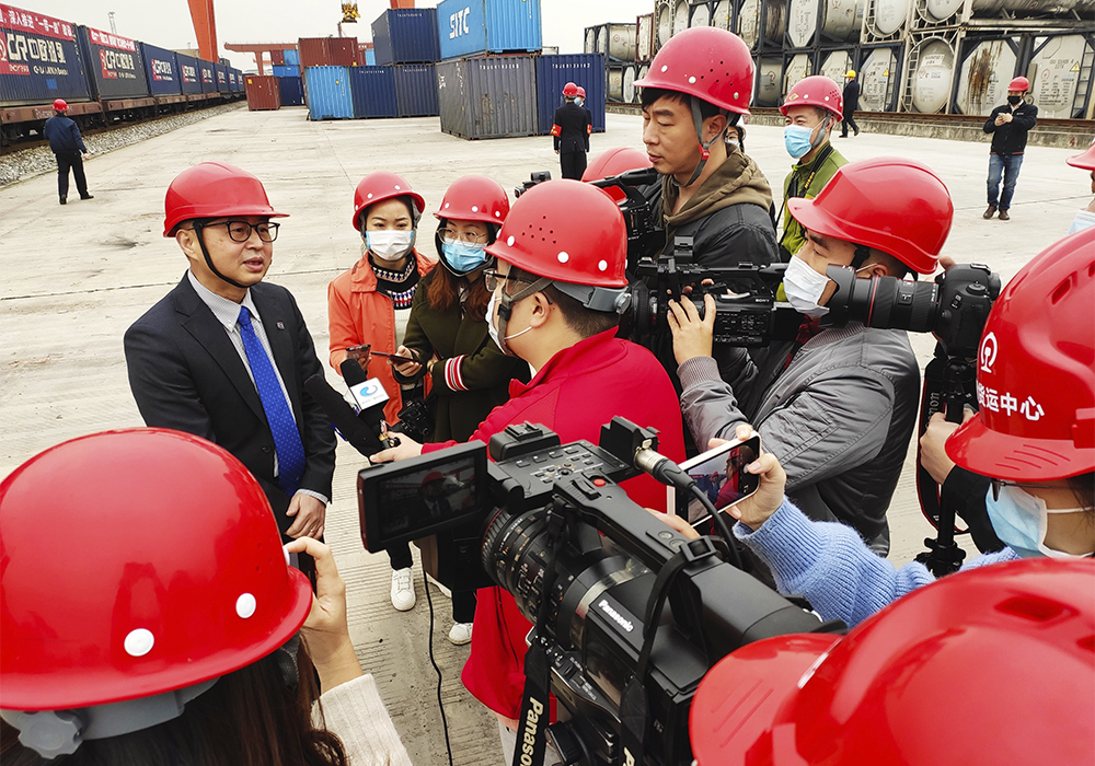 中欧班列首发仪式现场,BB网页版供应链中心高级总监金钢先生表示,疫情期间,各地运输能力下降,各国海关收紧。而中欧班列为我们提供了一个非常好的运输通道,不仅解决运输渠道问题,还比海运方式更快捷,能够节省接近一半时间,另外铁路运输也秉承了高效服务客户的精神,从BB网页版装箱到运抵客户全程“点对点”服务。