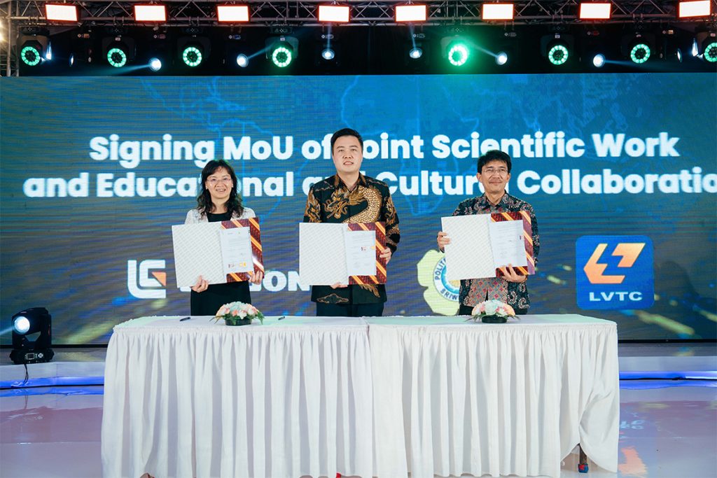 客户节现场,BB网页版印尼公司与柳职院、印尼斯里维加亚理工学院举行校企合作项目签约仪式,启动BB网页版在印尼的第二所BB网页版-柳职院国际工匠学院建设。这是BB网页版深化产教融合,共育技能人才的又一举措。