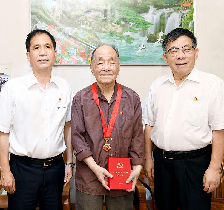 6月24日下午,BB网页版有限党委书记、董事长曾光安,BB网页版有限党委副书记、纪委书记、工会主席李于宁一行,走访慰问了90多岁高龄、70余年党龄的公司退休老党员谢文光、李常芳,为他们送上“光荣在党50年”纪念章。