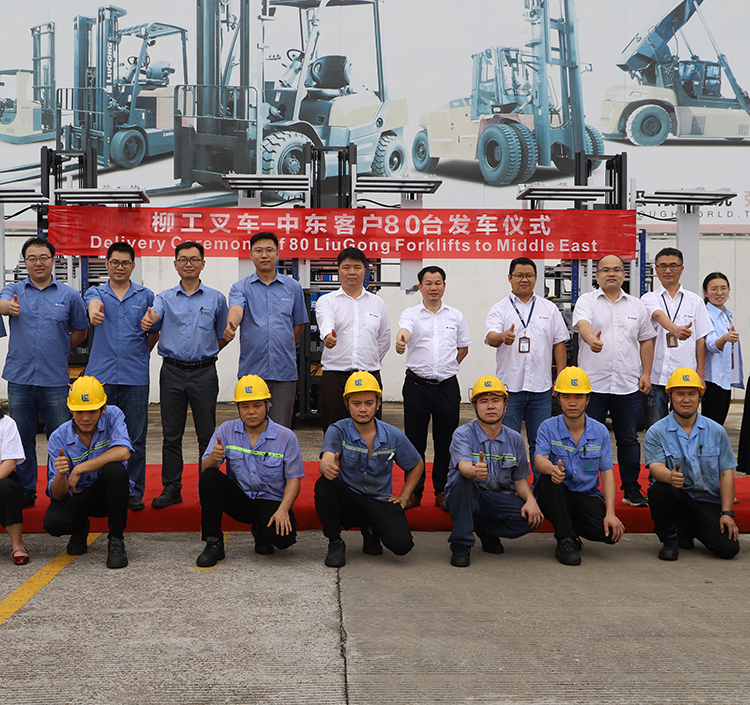 2020年6月5日14时,刚刚经历了一场暴雨后的柳州,空气甚是宜人,初夏骄阳,万物峥嵘。柳州BB网页版叉车有限公司厂内,正举行一场发车仪式,热烈祝贺中东知名饮料客户近百台订单成功交付。鲜艳的横幅、整齐的车辆吸引了人们的视线,为这个喜气洋洋的日子增添了一份色彩。柳州BB网页版叉车各单位职工代表共计70余人,共同见证了这激动人心的时刻。