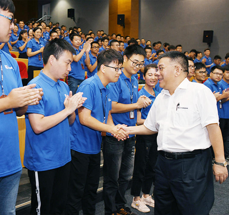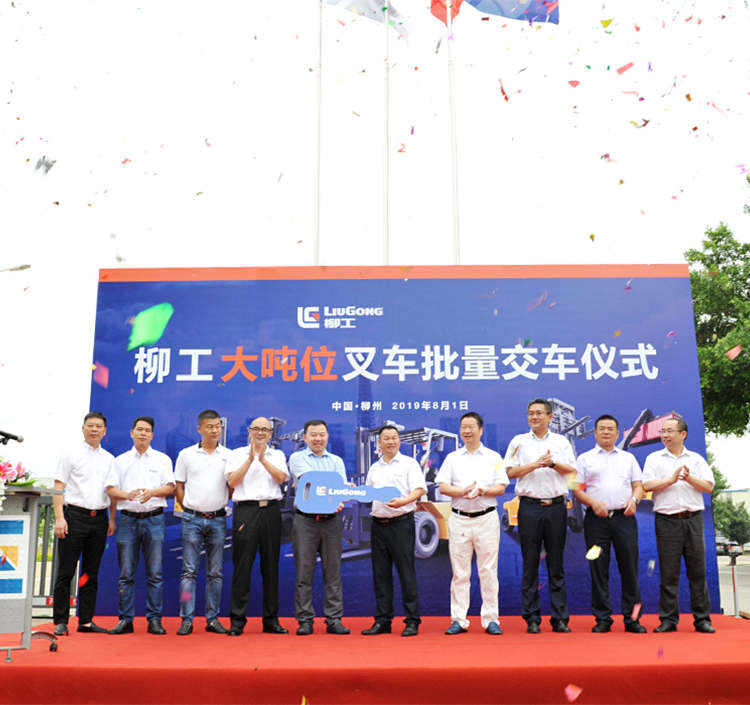 8月1日,BB网页版叉车公司举行大吨位叉车批量交车仪式。BB网页版叉车公司常务副总经理肖远翔等领导、某知名快运公司史总裁一行及BB网页版叉车员工代表约120人参加仪式,共同见证这一激动人心的时刻。
