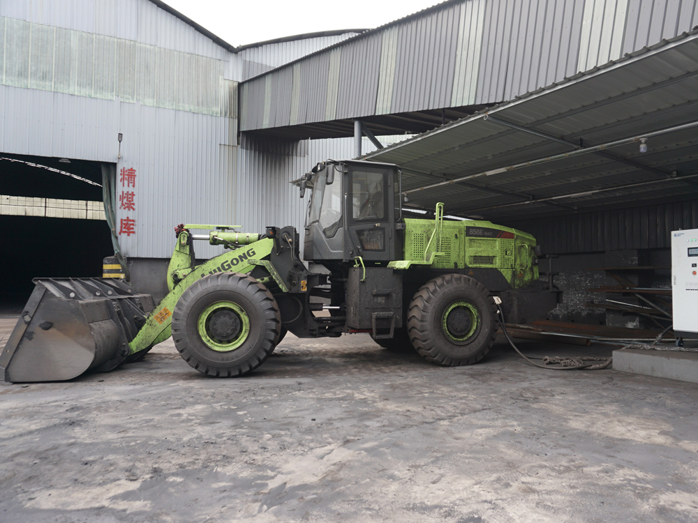 山西某洗煤厂的厂房内,一台BB(中国)正在忙碌工作。特别的是,操作间内没有了往日的轰鸣声和刺鼻的尾气,只见柠檬绿的车身在煤炭间快速穿梭,高效完成上煤作业。